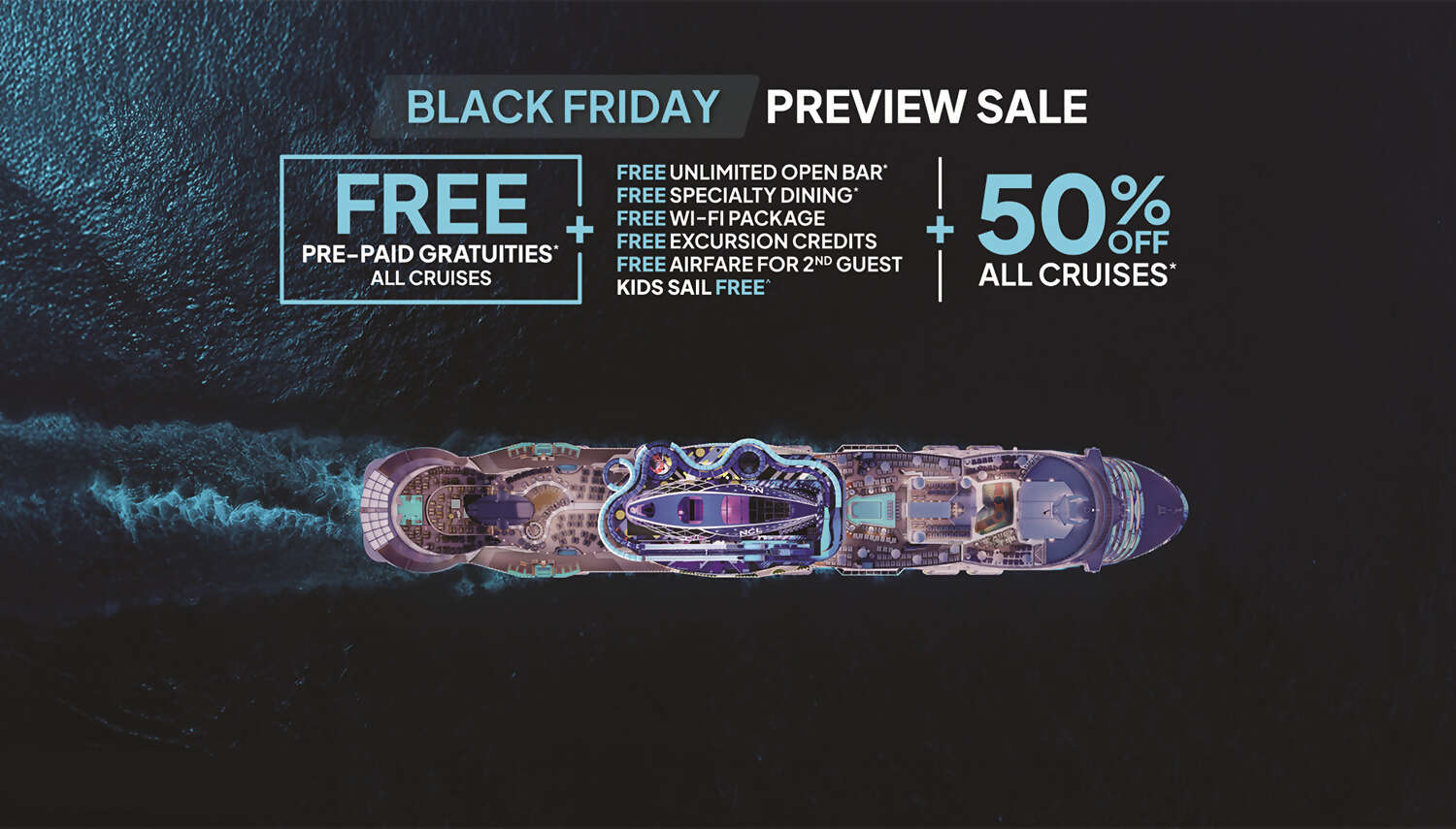 Take advantage of our Black Friday Preview Sale today! Save big with FREE pre-paid gratuities*, a value of $20 per person per day. And whether you cruise the Caribbean, Europe, Alaska or beyond, you’ll enjoy 50% off on all our cruises* all over the world, including our newest ships from the innovative Prima Class. The best part? Unlimited Open Bar , Specialty Dining and more at the best value with our Free at Sea™ package. So don’t wait and book now while these offers last!